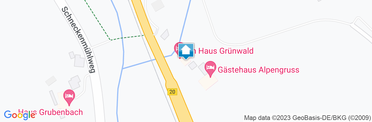 Anfahrt mit dem Auto aus Richtung Bad Reichenhall: Autobahn München-Salzburg (A 8), Ausfahrt Bad Reichenhall, Richtung Berchtesgaden (B 20), Bayerisch Gmain, Hallthurm. Nach 2 km Ortshinweisschild "Winkl". Nach 1 km blaues Straßenschild "Reichenhaller Str. 26". Nach ca. 70 m Haus Alpengruss ÖPNV: Buslinie 841 Haltestelle: Panorama Park