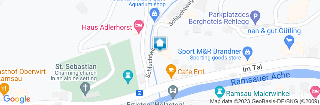 Autobahn A 8 München-Salzburg bis Ausfahrt Siegsdorf/Traunstein, weiter auf der B 306 Richtung Berchtesgaden, über Inzell, Weißbach bis Unterjettenberg, von dort auf der B 305 über Gasthaus Wachterl und Gasthof Hindenburglinde bis Ramsau Zentrum. Ins Dorf einbiegen und der Straße bis kurz vor Kirche/Friedhof folgen. Das Haus Barber liegt vor dem Friedhof auf der rechten Seite in der zweiten Häuserreihe.Richtlinien